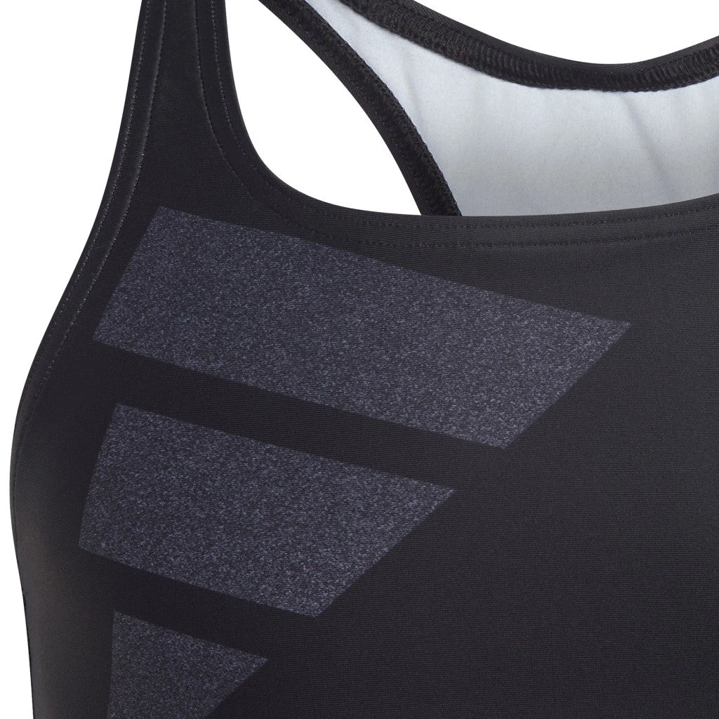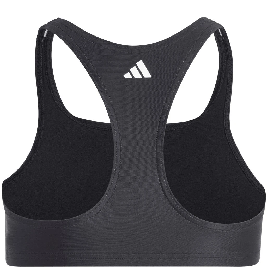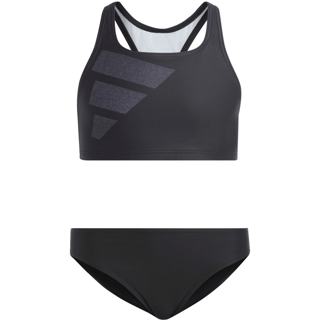 Bikini til piger fra Adidas. Overdelen har form som en sports bh og har bryderryg. Logo på overdel, både for og bag og helt sort underdel.