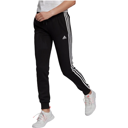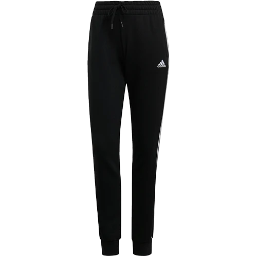 Bukserne har elastik i taljen og snøre for højere komfort, to åbne forlommer, de tre klassiske striber, smalle bukseben, ribkant ved anklerne og slank pasform.