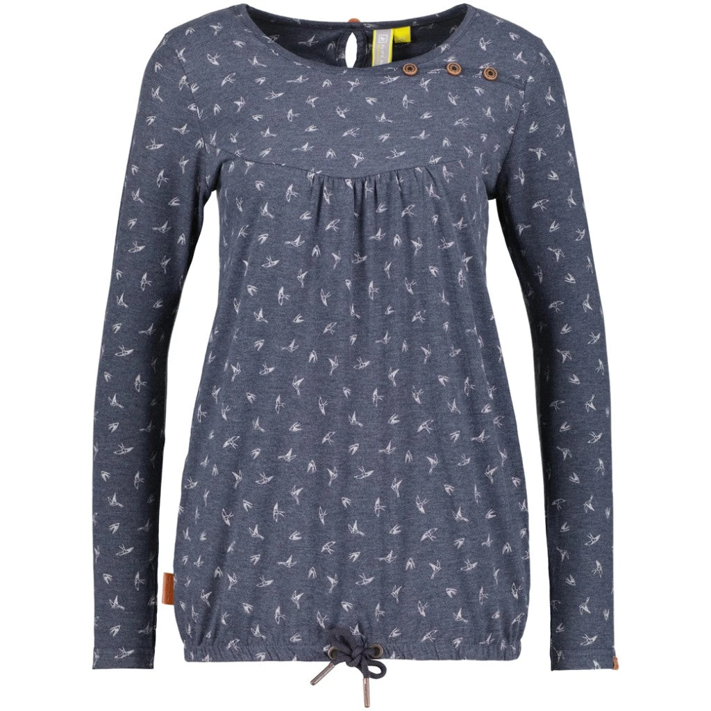 Lækker langærmet t-shirt i det blødeste materiale. Der er tre pynteknapper foran og en pyntesnøre i kanten af bunden. Så er der en lille åbning i nakken med en fin lille knap. Bunden er af elastikbånd.
