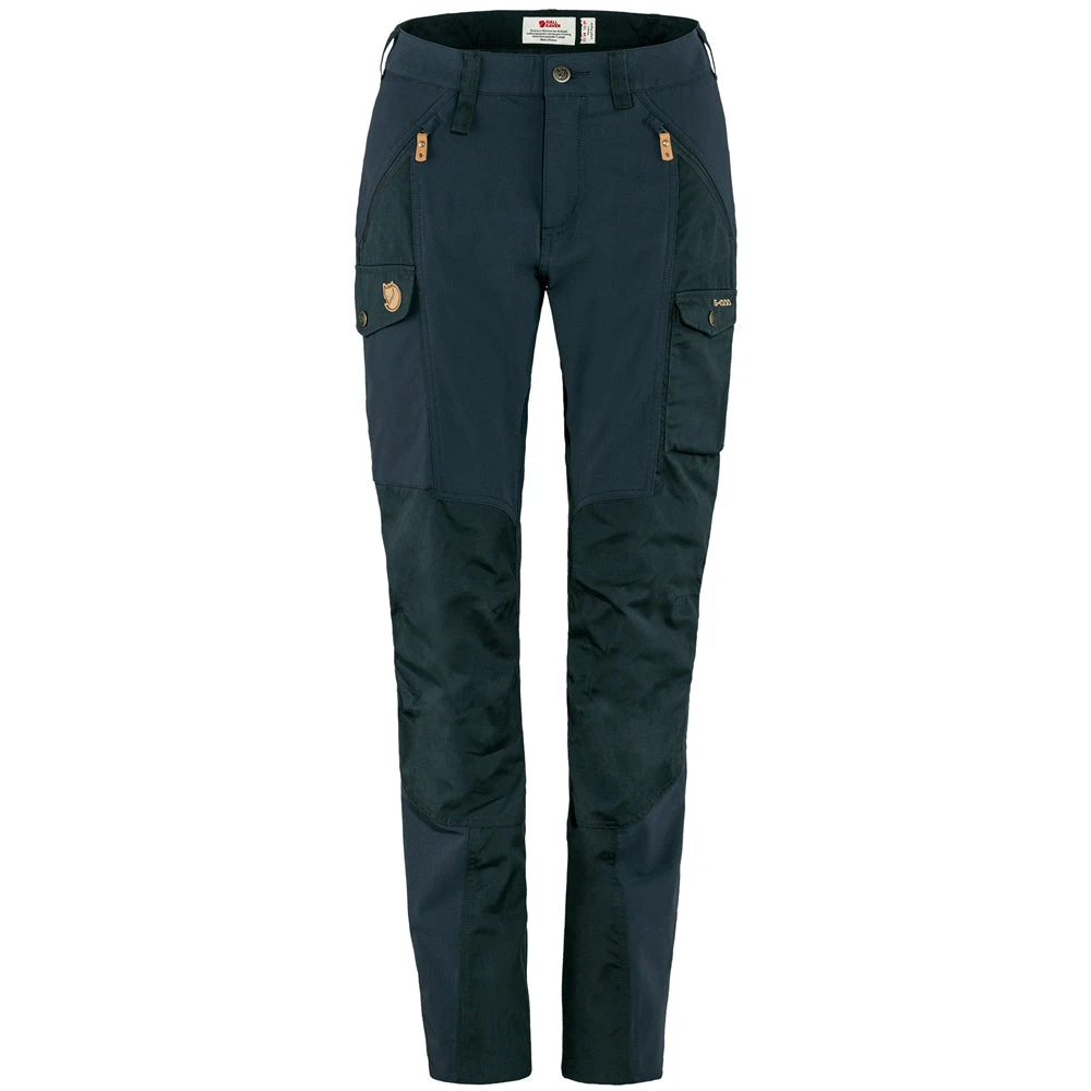 Smarte og praktiske outdoor bukser til kvinder, som er perfekt til vandreturen. Bukserne er designet til en figur med kvindelige former. Pasformen er mere rummelig over bagdelen og lårene, mens taljen er en smule mere fremhævet end på andre buksemodeller. Det gør bukserne mere behagelige, så de sidder bedre på en figur med kvindelige former, uden at de kommer til at stramme, krybe op eller gabe ved taljen bagtil. Bukserne er lavet af en kombination af stretch og G-1000, hvilket sikrer stor bevægelsesfrihed og slidstyrke. Forlommerne har lynlås og er placeret, så du let kan komme til dem, også selvom du bærer en rygsæk med hoftebælte. Bukserne har en stor benlomme med klap og en mindre indvendig netlomme på højre ben samt en lille benlomme til mobiltelefon eller GPS på venstre ben.