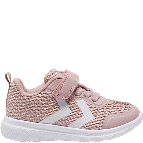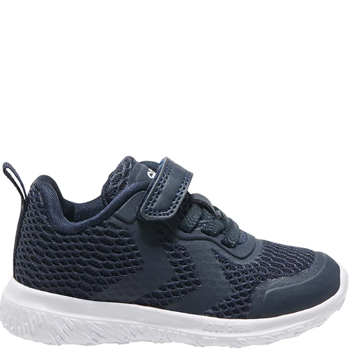 Lækre, bløde sneakers til de helt små piger og drenge fra Hummel. Børrneskoene er ydstyret med snørre og derefter velkrolukning, så børneneselv kan øve sig i at komme i dem. Overdelen er lavet af mesh og er af samme grund let og åndbar. Derudover har skoen en AeroTech EVA ydersål. Designet er fint og sporty, hvor de klassiske hummelvinkler er placeret på siden.