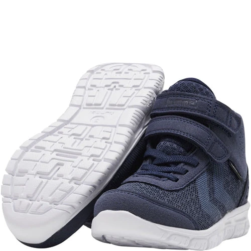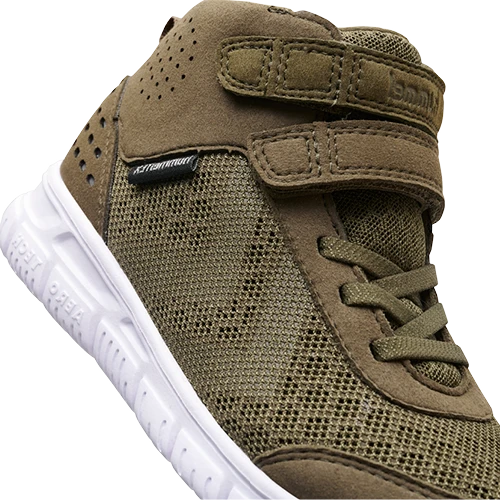 Fodtøjet er perfekt til det aktive barn, da de både er lette, åndbare og nemme at komme i, grundet elastik-snørebånd og 2 velcro-remme. Modellen er halvhøj, så den lige går op over anklerne.