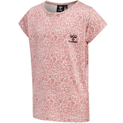 Smart t-shirt fra Hummel i rosa og hvid i krakeleret mønster til pigerne, der både fungerer til sport og fritid.