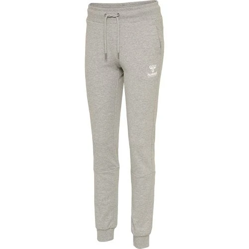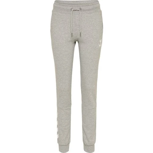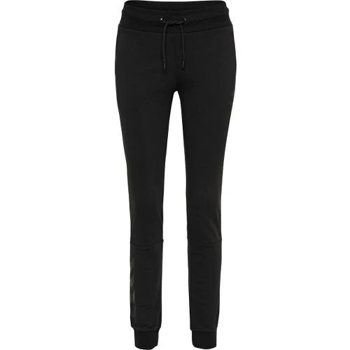 Lækre og komfortable sweatpants til damer, med logotryk og Hummel vinkler på højre underben. Modellens pasform er afslappet og løs, hvor livviden kan justeres ved hjælp af snøre i taljen. Derudover har joggingbukserne bløde ribkanter ved anklerne og i livet samt synlige syninger under knæerne.