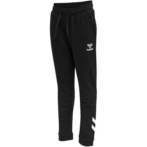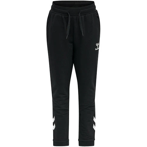 Bløde og lækre bukser fra Hummel med logo på venstre lår, og på ydersiden af buksebenene sidder de velkendte vinkler. Hummel bukserne har en bred kant i livet og har bindebånd for til og med brede ribkanter i benåbningerne.