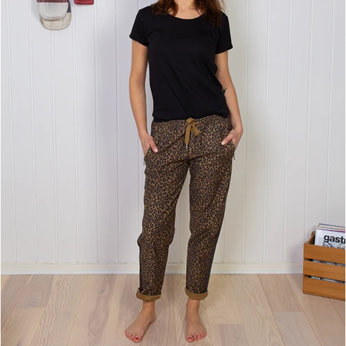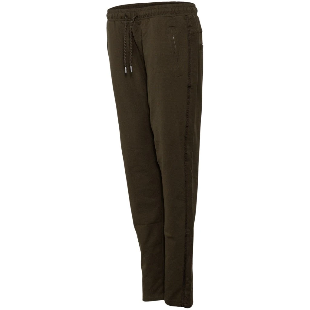 Smarte damebukser fra Kopenhaken med relaxed fit, stribe langs benet og forlommer med lynlåslukning samt pyntelommer på bagdelen. Bukserne er af blød kvalitet og tilbyder med sit elastiske materiale en yderst behagelig komfort. Der findes en bred elastik i livet, hvor livviden kan justeres yderligere efter behov ved hjælp af snoretræk.