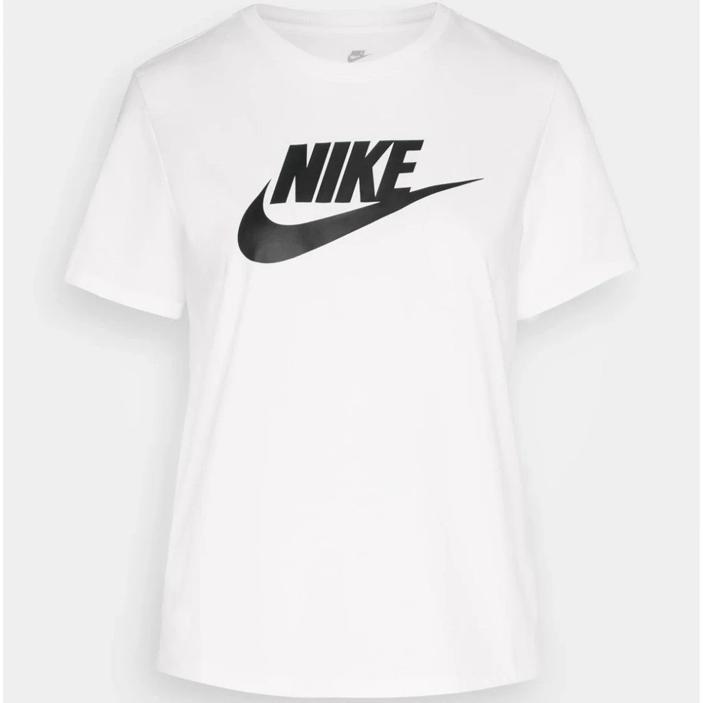 T-shirten har en rund hals med ribkant og stort Nike logo trykt på brystet.