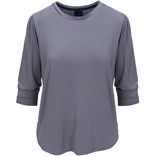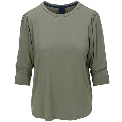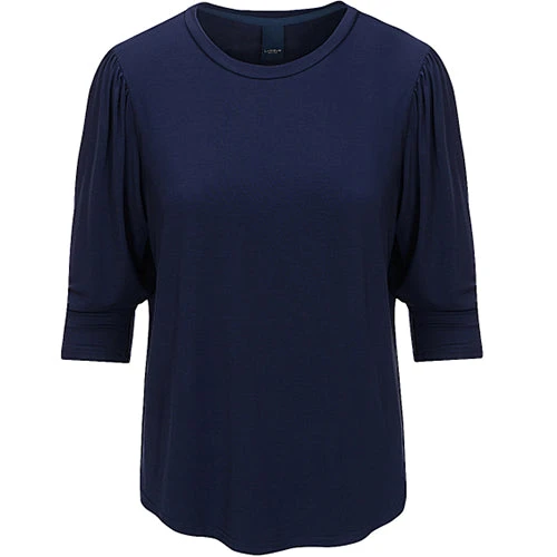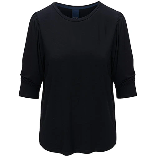 Super lækker T-shirt fra LUXZUZ One Two, hvor bundkanten runder fint og giver et feminint look. T-shirten har et 3/4 langt pufærme og en rund hals.