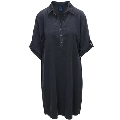 Kjolen er lavet i blød babyfløjl, med skjortekrave og knapper ned foran. Ærmerne kan foldes op og sættes fast med en strop. Kjolen går ca ned til knæene og har skjulte sidelommer.