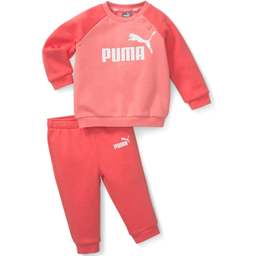 Smart og blød babyjogger til de mindste. Bukserne er ensfarvet mens overdelen er i to farver. På venstre bukseben er der et lille logo, mens der på overdelen er et stort logo på brystet. Ved halsåbningen har den små trykknapper, så den er nem at få over hovedet på barnet.