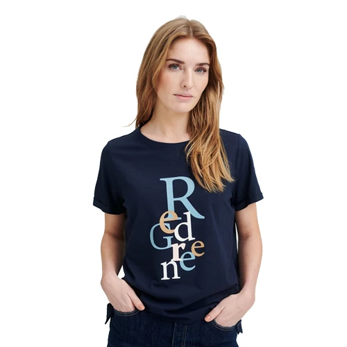 Fin og feminin, kortærmet t-shirt med REDGREEN print på maven. T-shirten er lavet i 100% økologisk bomuld, der gør den blød og behagelig at have på. T-shirt Carmen har slids i siden og passer perfekt til både forår og sommer.