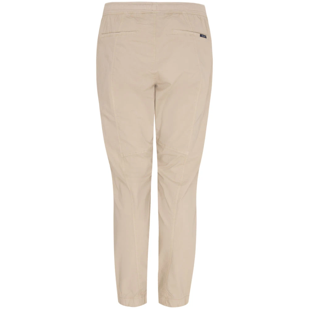 En blød og behagelig buks der er perfekt til hverdag og fritid. Buksen har ribkant i taljen og snor, der er slis med lynlås i begge ben og elastik i buksekanten. Modellen har to sidelommer og to baglommer, samt syninger på tværs af benen og omkring knæene som giver dem et virkelig smart look.