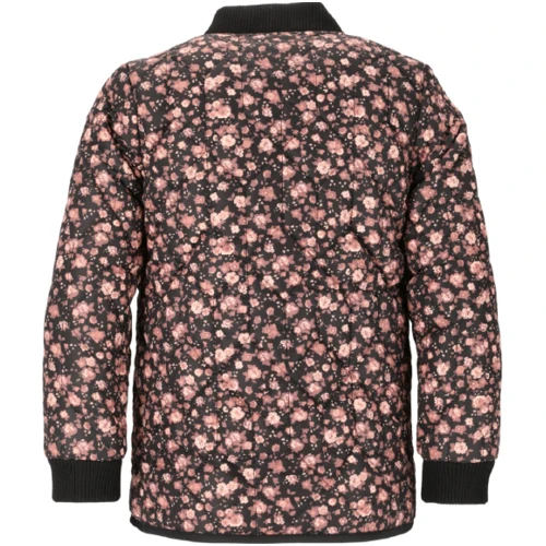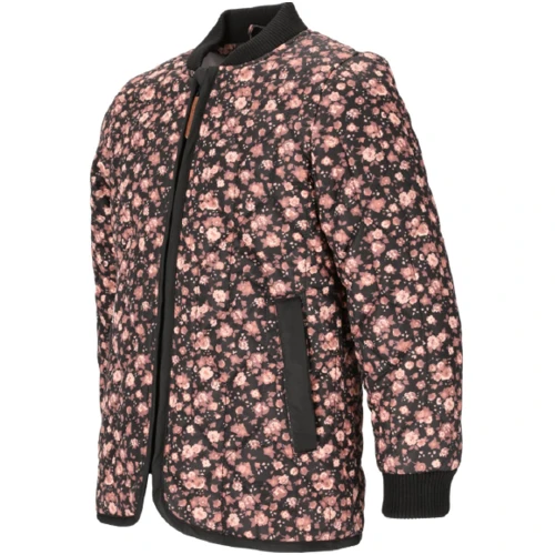 Super fin termojakke til pigerne. Den quiltede jakke er med et flot blomstret print og med gennemgående lynlås. Desuden har den to sidelommer samt ribkanter ved ærmer og kraven